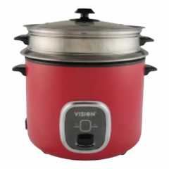 VISION Rice Cooker 3.0 Ltr 100 SS Red Brand: Vision Item code:873112 Specification: Inner Pot: Double pot (One is SS pot and one is Aluminum) Power: Cylinder shaped, 3.0 Ltr. 220V- 50Hz, 1100W 2 hole 6-6.5mm Plastic Handle Glass Lid Magnetic Switch and Thermostat Full SS Body...