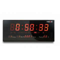 Vision Digital LED Clock REL-VIS-DLC-001 Item Code: 873186 Brand: VISION Product Type: Digital Clock Color: As given picture. Length: 360mm Height: 150mm Wide: 30mm Temperature range: (-)50° to (+)70° C Temperature: ±1° C Power Supply: 3.7V to 5V, 1A DC, 5W Wall & Desktop...