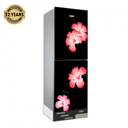 VISION Glass Door Bottom Mount Refrigerator RE-252 Liter Mirror Jaba Flower