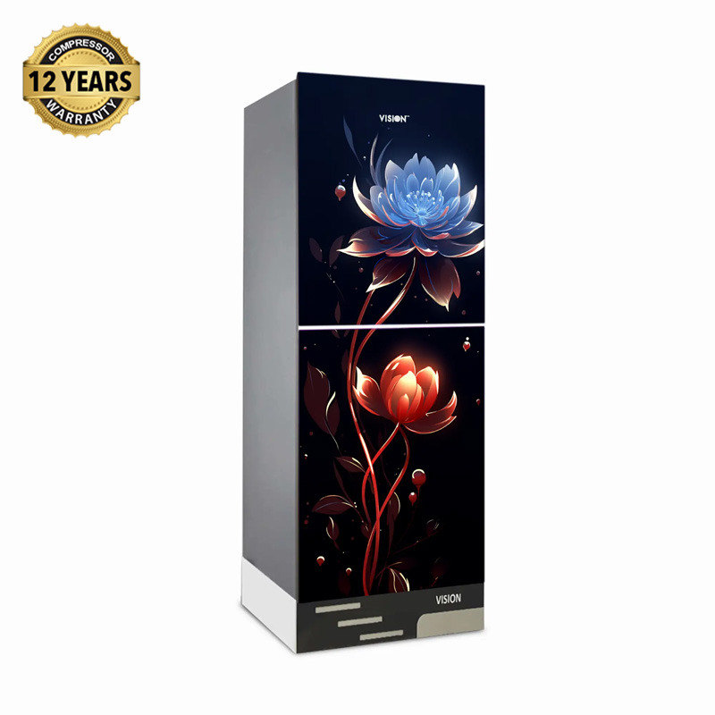 VISION Glass Door Refrigerator RE-185 Liter Blue Red Flower Bottom Mount