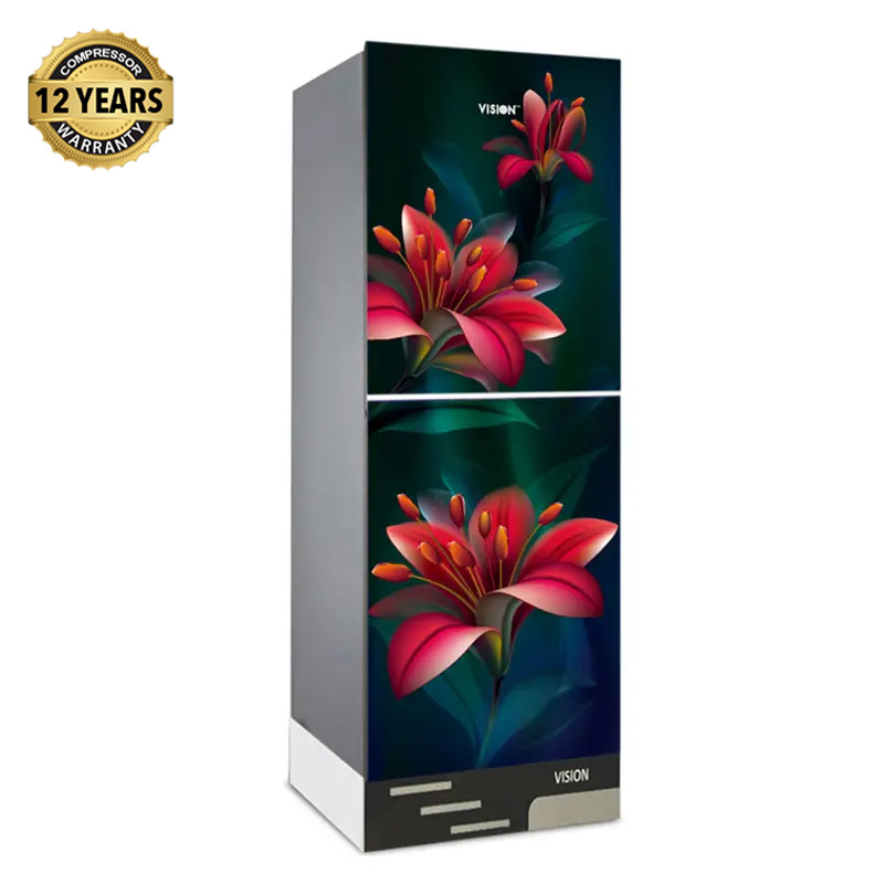 VISION Glass Door Refrigerator RE-185 Liter Red lotus lily Flower Bottom Mount
