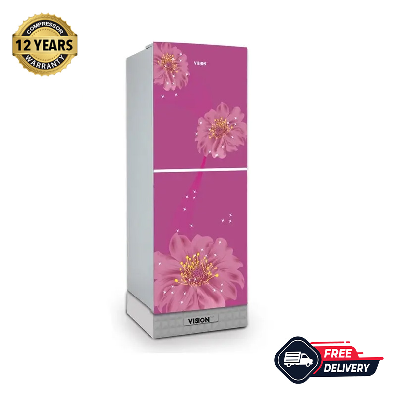 VISION Glass Door Refrigerator RE-180L Pink Juhua Flower Top Mount